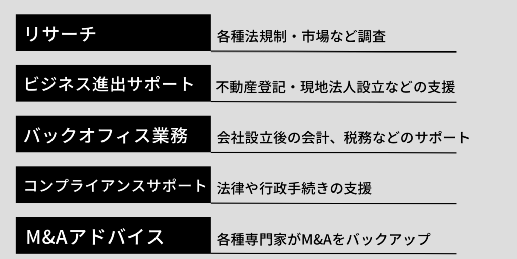 それぞれの分野に特化した専門家が在籍しており、幅広いサービスを提供できます。専門的な知識も極めて深いものであるため、質の高い知識や経験を活かした支援が可能です。